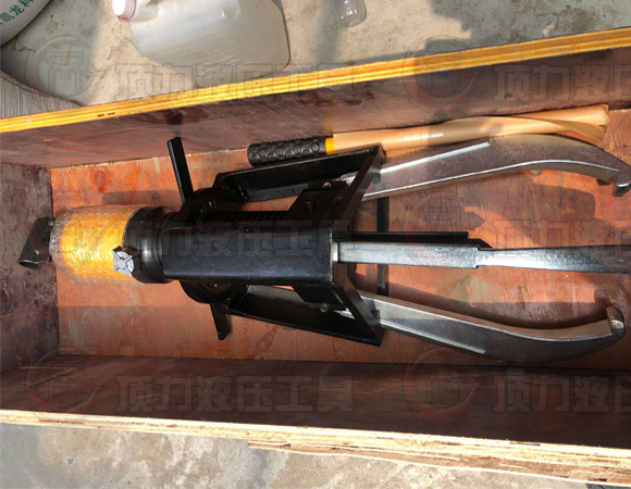 一體式液壓拉馬是以液壓起動桿直接前進移動,故推動桿本身不作轉動。鉤爪座又可隨螺紋直接作前進后退之調距,操作時只要把手前后小幅度擺動,油壓起動桿前移,鉤爪相對應后退,把被拉物體拉出。